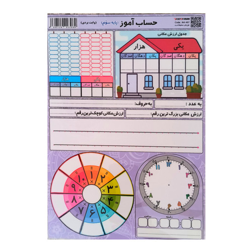 پوستر وایت برد لمینت شده دو روی جدول فارسی و ریاضی