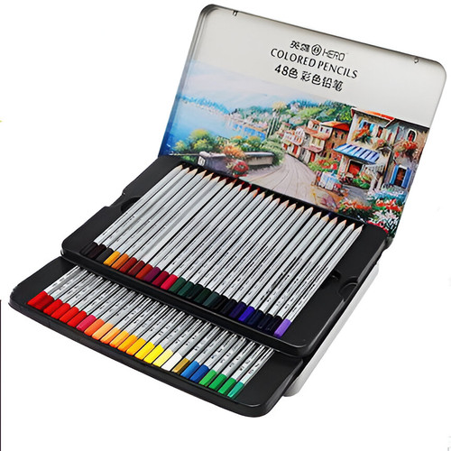 مداد رنگی وارداتی ۴۸ رنگ (جعبه فلزی نوک نرم و پر رنگ)