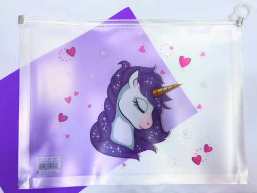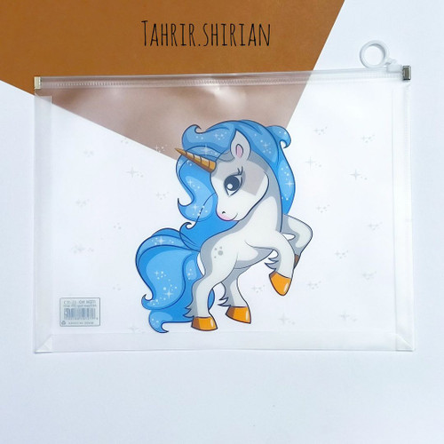 پوشه زیپ دار طرح تک شاخ مو آبی
