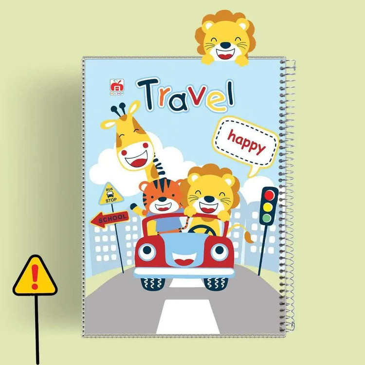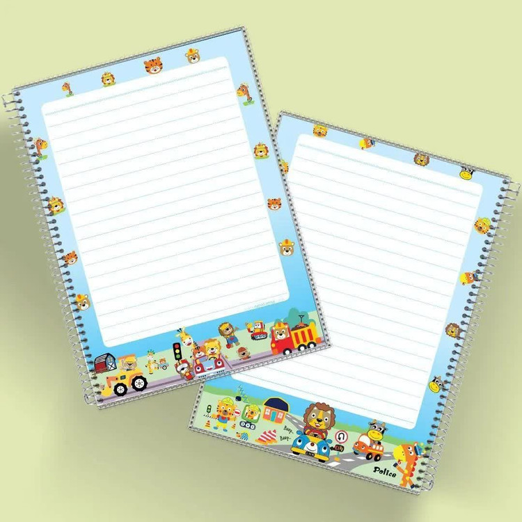 دفتر طرح حیوانات فانتزی دور حاشیه مجلد کاغذ80گرم خط آبی
