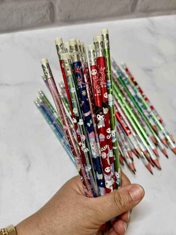 ۱۲ عدد مداد سه گوش پاک دار کرومی